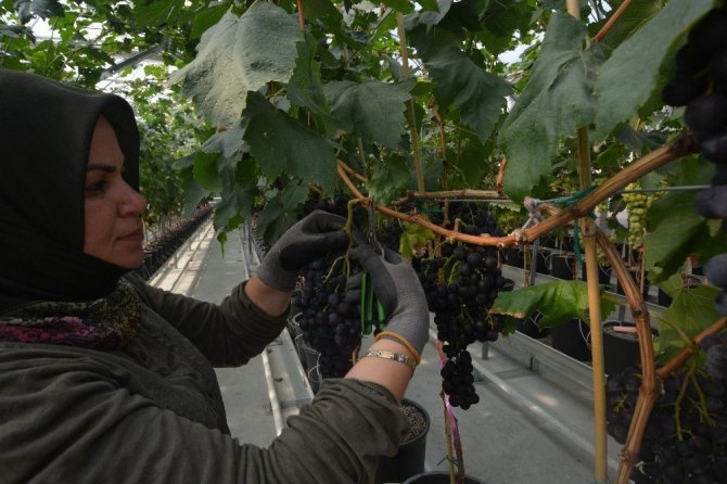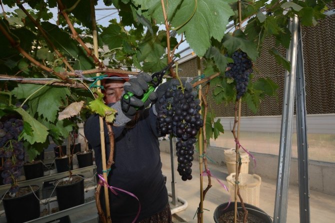 Türkiye’de ilk defa kapalı sistem serada üzüm hasat edildi