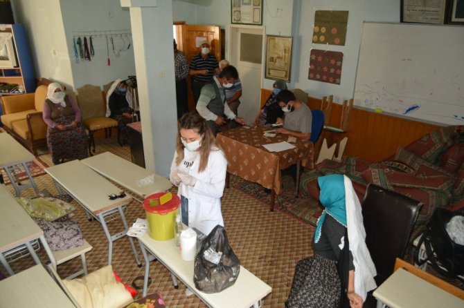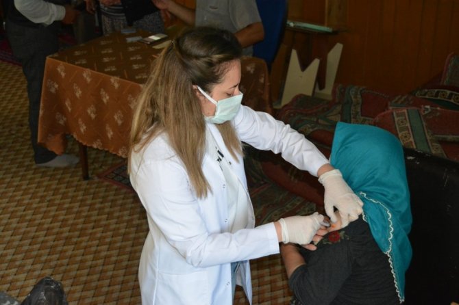 Aşılama ekibinde görevli Ebe Dilek Sevim, aşıya gelemeyen vatandaşlara ulaştıklarını ifade edip, "Doktorumuzla birlikte müdürlüğün bize belirlediği köylerde aşı yapmaktayız. Aşıya gelemeyecek vatandaşlara köylere giderek aşı yapıyoruz. Şuan bulunduğumuz köyde 50 kişiye aşı yaptık. Bizler köylerde aşı yapmak için uzun yollardan gelmekteyiz ve fazlaca yoruluyoruz. Vatandaşlarımızdan da aşı katılımlarını beklemekteyiz" dedi.