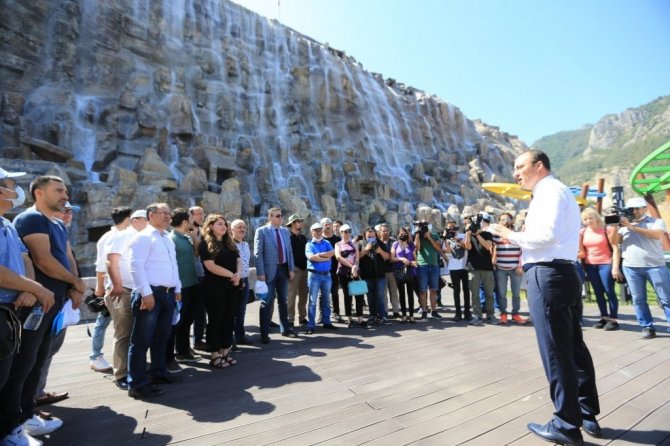 Misafirleriyle projenin ilk etabı olan şelaleyi gezen Başkan Örki, burada yaptığı açıklamada, "Bugün sizler vasıtasıyla bu ülkeye kazandırılmış olan muazzam eserin tanıtımını yapmak, insanlara bunu anlatmak istedik. Şu anda Türkiye'nin en büyük tematik orman parkı projesi olan Pamukkale Belediyesi Seyir Tepesi Şehir Ormanı projemizin ilk etabı olan Şelale Park kısmındayız. Bu projemiz içinde birçok enleri, birçok en büyükleri, en uzunları gibi kavramları barındıran bir proje. Türkiye'nin en büyük yapay şelalesi bu proje içinde yer alıyor. Burası eskiden taş ocağıydı ve yapılan çalışmalarla kentin buluşma noktalarından biri haline geldi. Tüm halkımızı Şelale Park'ı görmeye davet ediyorum" dedi.