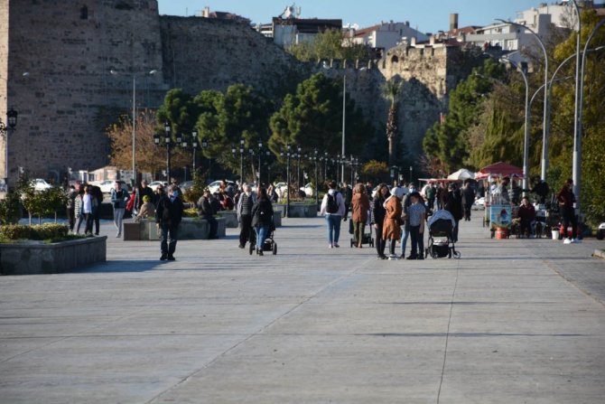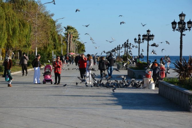 Son zamanlarda etkisini artıran soğuk havalar yerini güneşli bir havaya bıraktı. Kuzeyin yıldızı Sinop'ta termometreler 18 dereceyi gösterdi. Hava sıcaklığının yükselmesiyle insanlar soluğu sahil ve yürüyüş yollarında aldı. Aşıklar Caddesi yürüyüş yapanlarla dolup taştı. Torunları ve çocuklarıyla dışarı çıkan aileler oyun parklarını doldurdu. Çimlerde oturup dinlenenler ve voleybol oynayarak vakit geçirenler objektiflere yansıdı. Sahil boyunca da denizin durgun güzelliği eşliğinde yürüyüş yapanlar eşsiz manzaranın keyfini çıkardı.