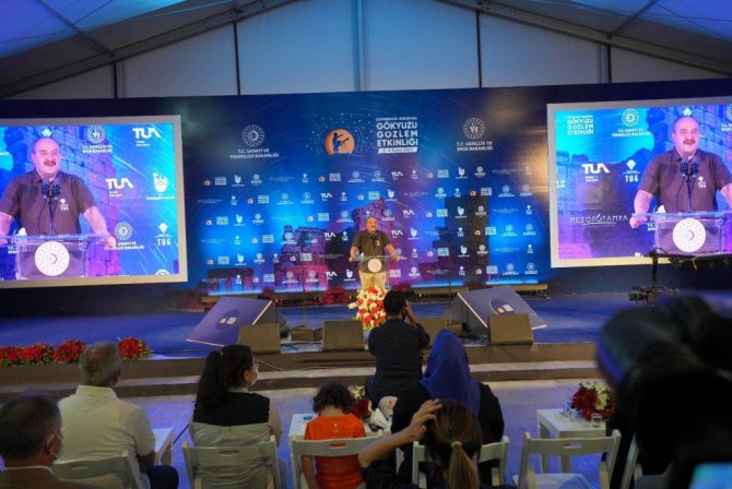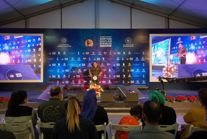 Bakan Varank, "Bu alandaki çalışmalarımıza hem TÜBİTAK UZAY Enstitümüz hem de Türkiye Uzay ajansımız ile yoğun bir şekilde devam ediyoruz. TÜBİTAK UZAY ile ülkemizin yüksek çözünürlüklü görüntü ihtiyacını karşılamak ve yurt dışı bağımlılığını ortadan kaldırmak amacıyla İMECE Uydu Projesi'ni yürütüyoruz. Türkiye'nin ilk yerli haberleşme uydusunun geliştirildiği TÜRKSAT 6A Projesi'nde ise tasarım faaliyetlerini tamamladık, üretim aşamasına geçtik. İnşallah bu uydularımızı 2022 yılı içerisinde fırlatmaya hazır hale getireceğiz. Böylece haberleşme uydularını milli imkanlarla geliştirebilen 10 ülkeden biri Türkiye olacak. Biliyorsunuz ülkemizin uzay çalışmalarında vites yükseltmek için Türkiye Uzay Ajansımızı kurduk. Daha sonra ilgili tüm ulusal ve uluslararası paydaşlarımızla Milli Uzay Programı'nı oluşturarak stratejik hedefler belirledik. Cumhurbaşkanımızın açıkladığı bu hedefleri, özellikle gençlerimizin çok büyük heyecanla karşıladıklarını biliyorum. O yüzden bu hedeflere kısaca tekrar değinmek istiyorum. Milli Uzay Programımızın en önemli hedefi olan Ay misyonunu başarıyla tamamlayarak Cumhuriyetin 100. yılında Ay ile ilk teması gerçekleştirmek istiyoruz. 2023 yılı sonunda uluslararası iş birliği ile 2028 yılında ise milli roketimizle uzay aracımızı Ay'a indirmeyi hedefliyoruz. Bu sayede Ay'da bilimsel faaliyetler yapabilen sayılı ülkelerden biri konumuna geleceğiz. Ay'a göndereceğimiz insansız uzay aracının tasarım ve geliştirme çalışmaları halihazırda devam ediyor. Oldukça sıkışık bir takvimde arkadaşlarımız büyük bir gayretle çalışıyorlar. Milli Uzay Programı'ndaki bir diğer hedefimiz de Türkiye'yi astronomik gözlemler ve uzay nesnelerinin yerden takibi konularında daha yetkin bir ülke konumuna getirmek. TÜBİTAK Ulusal Gözlemevimiz gözlem projelerine tıpkı bugün burada olduğu gibi, altyapı ve insan gücü desteği sağlıyor. Şimdi Erzurum'da Doğu Anadolu Gözlemevi'ni kuruyoruz. Bu gözlemevi Türkiye'nin en büydiğeük optik ve ilk kızılötesi teleskobuna sahip olacak. Belirlediğimiz hedeflerin ve projelerin başarıyla gerçekleştirilebilmesi amacıyla gerek yurt içinde, gerekse yurt dışında iş birliği faaliyetlerini de sürdürüyoruz. Uzay alanında harcadığımız tüm emeklerin çok geniş bir alanda katma değerle bize döneceğinin bilincindeyiz. En önemlisi de gençlerin gündeminde uzay ve teknoloji olsun, bu alanda kendilerini geliştirsinler istiyoruz. Ufku Samanyolu kadar geniş gençlerimizle Türkiye'nin uzay yarışındaki konumu 10 yıl içinde üst basamaklara yükselecek. Biz buna yürekten inanıyoruz. İşte geçen gün Akıncı TİHA'nın teslimat töreninde, o insansız hava aracını geliştiren pırlanta gibi gençlerimizi gördünüz. Her birinin zekâsı, heyecanı, tutkusu gözlerinden okunuyordu. Araştıran, geliştiren, kendine güvenen, özünü bilen, azimle, cesaretle, gayretle ileriye bakan bir gençlik. Sevgili gençler sizi A kuşağı, Z kuşağı diye adlandıranlara asla aldırış etmeyin. Siz Türkiye'yi hedeflerine ulaştıracak, yarınlarımızı aydınlatacak asıl kahramanlarımızsınız. İnanın ben gözlerinize baktığımda bu ışığı görüyorum. İnanıyorum ki, bayrağımızı uluslararası uzay istasyonuna taşıyacak isimlerden biri buradan çıkacak. Ay misyonumuzdan edindiği tecrübeyle Mars misyonunun hazırlığını yapacak uzaycılar buradan çıkacak. Yeni gezegenler keşfedecek astronomlar sizlerin arasından çıkacak. Yeter ki kendimize güvenelim, yeter ki yüreğimizde uzay ve teknoloji tutkusu bir an olsun sönmesin. İşte bu heyecanı diri tutmak için gözlem şenliklerimizi ülkemizin farklı şehirlerinde gerçekleştirmeye, daha fazla gencimize ulaşmaya devam edeceğiz. Şimdiden hazırlıklara başla, seneye burası gökyüzü meraklısı gençlere yetmez" dedi.