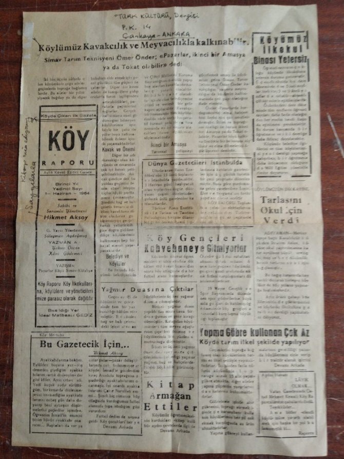 1963 yılının Aralık ayında ilk sayısı çıkan "Köy raporu" gazetesi, o yıllarda Simav’ın köyü olan Pazarlar’da öğretmen olarak görev yapan Trabzonlu Hikmet Aksoy tarafından çıkarıldı. Eğitimci Yazar Ahmet Demircan, arşivindeki Türkiye’nin 2’inci köy gazetesinin orjinalini Simav kent müzesi görevlisi Tahir Tomata’ya teslim etti.