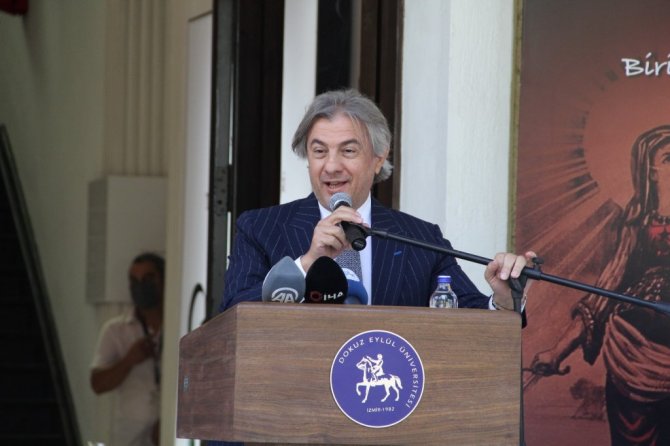 Dokuz Eylül Üniversitesinin Kurtuluş Haftası etkinlikleri, al bayrağımızın şanlı tarihinin anlatıldığı Türkiye'nin ilk Bayrakbilim ve Türk Bayrakları Müzesinin kuruluş yıl dönümü programı ile başladı. Dokuzçeşmeler Yerleşkesi'nde bulunan Eylül Köşk içerisinde geçtiğimiz yıl TBMM Başkanı Mustafa Şentop'un katılımıyla açılan müzenin ilk kuruluş yıl dönümü programı, yine aynı yerde gerçekleşti. Törene Kültür ve Turizm Bakan Yardımcısı Ahmet Misbah Demircan, Dokuz Eylül Üniversitesi Rektörü Prof. Dr. Nükhet Hotar, Milli Savunma Üniversitesi Rektörü Prof. Dr. Erhan Afyoncu, Buca Kaymakamı Mahmut Nedim Tunçer ile kurum müdürleri ve üniversitenin akademik ve idari personeli katıldı. Tören, saygı duruşu ve İstiklal Marşı'nın ardından oyuncu Ahmet Yenilmez'in, 15 Mayıs 1919 günü İzmir'in Yunan ordusunca işgalinin başlamasıyla, Yunanların tüm zorlamalarına rağmen "Zito Venizelos" diye bağırmayı reddetmesi üzerine 22 süngü darbesi ile öldürülmüş bir Osmanlı subayı olan Süleyman Fethi Bey'in yaşadıklarını anlatmasıyla devam etti.