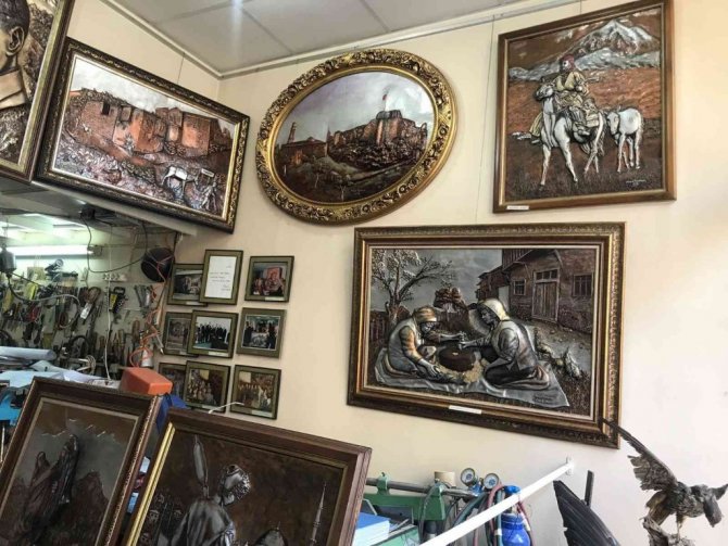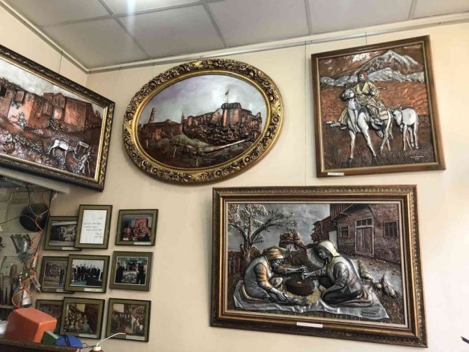 Elazığ'da Türkiye'nin tek bakır rölyef sanatçısı olan ve yarım asırdır bakıra çekiç sallayan Harun Taşdemir'in yaptığı 3 boyutlu eserler, görenleri kendine hayran bırakıyor.