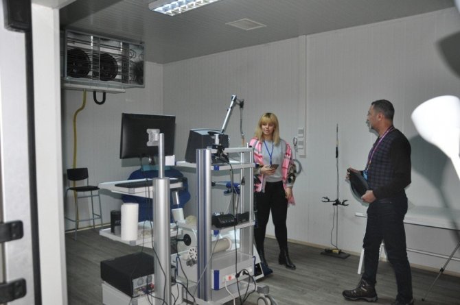 İklimlendirme Laboratuvarı içerinde birçok donanımın kullanıldığını ifade eden Doç. Dr. Özgür Özkaya ise, “Innocor Inno500 Kardiyak Çıktı Ölçer ile solunum gazlarının analizi yapılıyor. Laboratuvarda eksi 5 derece ile artı 50 derece arasında ortam sıcaklığı ve yüzde yirmi ile yüzde doksan arasında nispi nem koşulları sabitlenerek çevre koşullarının sportif performans üzerine etkileri araştırılıyor. Ayrıca sporcuların gidecekleri yerdeki çevre koşullarına uyum programları düzenlenerek uygulaması gerçekleştiriliyor. Hokkanson Oklüzyon Pletismografı ile egzersiz ve çevre koşullarının ekstremite kanlanma düzeyinde neden olduğu değişiklikler belirleniyor. Ayrıca laboratuvarımızda, Monark 814 E Bisiklet Ergometresi, Trotec IC080L Termal Kamera, Trotec DL 200-300 Sıcaklık ve Nem Ölçerler, Lode Excalibur Sport Manyetik Frenli Bisiklet Ergometresi, TFA Dostmann Barometre, Polar RS-400 Telemetrik Nabız Ölçer, Star Track 4000 Koşu Bandı, Precor EFX576i Manyetik Frenli Eliptik Bisiklet, Nan 150 kg Mekanik Baskül gibi donanımlar yer alıyor” diye konuştu.