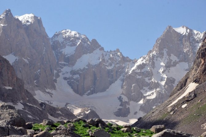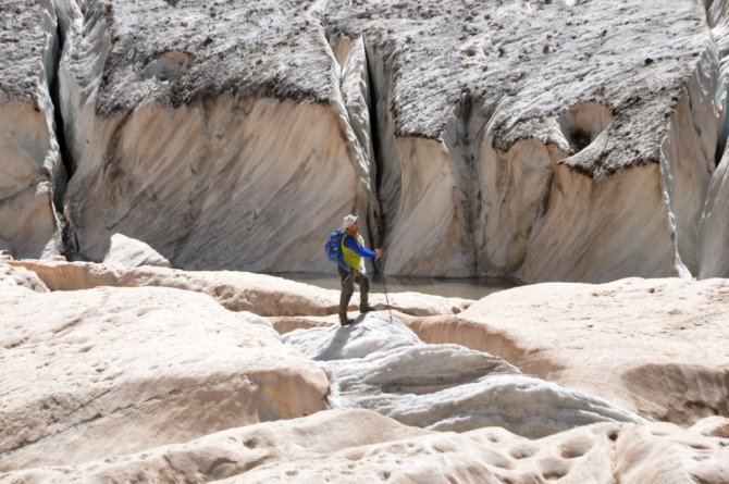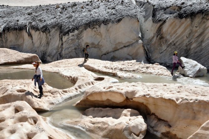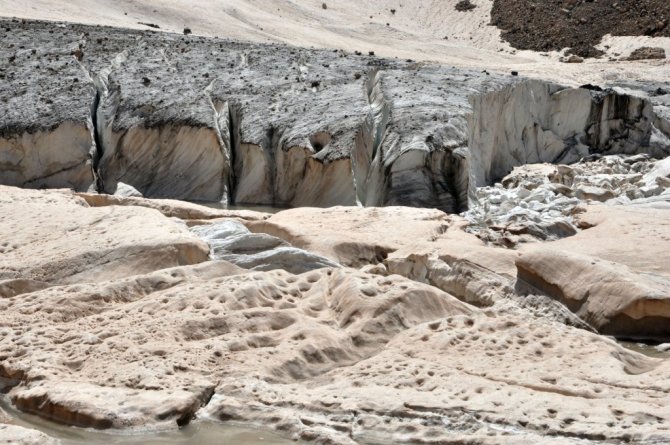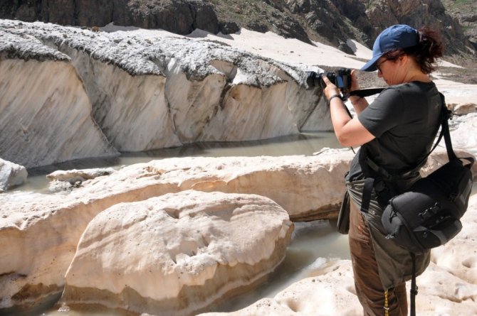 Hakkari-Yüksekova sınırında Cilo Dağları'nda yer alan 20 bin yıllık buzullar, doğaseverlerin uğrak mekanı olurken, küresel ve iklim değişikliğiyle gün geçtikçe eriyor. Dünya genelinde etkili olan küresel ısınma ve iklim değişikliği beraberinde riskleri de getiriyor. Bu risklerden biri de buzulların erimesi oldu. Türk Coğrafya Kurumu da iklim değişikliğinin Türkiye'deki buzullarına etkisini gözlemlemek için Hakkari ve Yüksekova Cilo Dağları'nda 5 günlük arazi çalışması yaptı. Coğrafya öğretmenlerinden oluşan kadroyla, 1950 metrelerdeki Yüksekova'da sazlık ve bataklık alanları gezdi, 3 bin 794 metre yüksekliğindeki Sat Dağları'nın buzul göllerini gözlemledi. Daha sonra Cilo Buzul Vadisi'ndeki buzullara ve şelale bölgesine çıkıldı. Kuraklık nedeniyle buzullardaki gerilemeleri yerinde gözleyen ekip, 3 bin 50 metredeki Gelyano Buzul Gölü'nü inceledi. Aktif buzullar, enine buzul çatlakları, erime öncesindeki eski buzuldan geriye kalan buzul çizikleri ve buzul cilalama izlerini gören ekip, yaylalardaki otlaklarda sürü sahiplerinden bilgi aldılar.