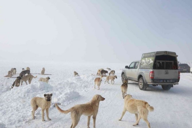 Van'ın Tuşba Belediyesi, kar yağışı ve dondurucu soğuklar nedeniyle yiyecek bulamayan sokak hayvanlarına sahip çıkıyor.