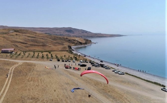 Van'ın Tuşba Belediyesi, 30 Ağustos Zafer Bayramı dolayısıyla Van Sportif Havacılık Kulübü ile ortaklaşa yamaç paraşütü ve Van Gölü sahilinde çevre...