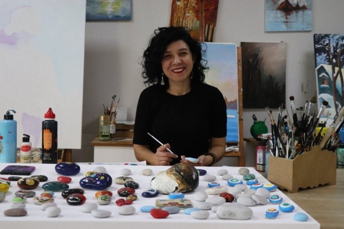 Denizli'de yaşayan resim öğretmeni Aysun Döner'in, taş boyama tekniğiyle kendi atölyesinde yaptığı minik tuvaller, sanatseverlerin beğenisini topluyor.
