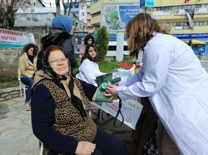 Tuz Farkındalık Haftası etkinlikleri kapsamında Muğla Eğitim ve Araştırma Hastanesi sağlık personeli Menteşe Sınırsızlık meydanında ücretsiz tansiyon...