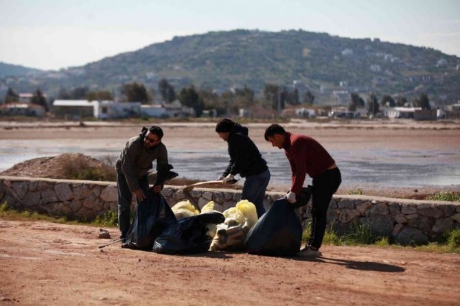 Bodrum - Milas karayolu üzerinde bulunan Boğaziçin Tuzla Sulak Alanı, sosyal medya üzerinden organize olan bir grup çevre gönüllüsü tarafından çevre temizliği yaptı. Flamingolarıyla ünlü 250'ye yakın kuş türüne ev sahipliği yapan Boğaziçi Bargilya Tuzla Sulak Alanı'ndaki çevre kirliliğine duyarsız kalmayan gönüllüler sabah saatlerinde alana giderek temizliğe başladı. Eski yağhane binasında bir araya gelen grup, ilk olarak tarihi binanın çevresinde temizlik gerçekleştirdi. Daha sonra Boğaziçi mevkiine giden yolun her iki tarafında çevreye gelişi güzel atılan çöpleri temizleyen grup, yaklaşık 2 saatte 33 poşet çöp topladı.