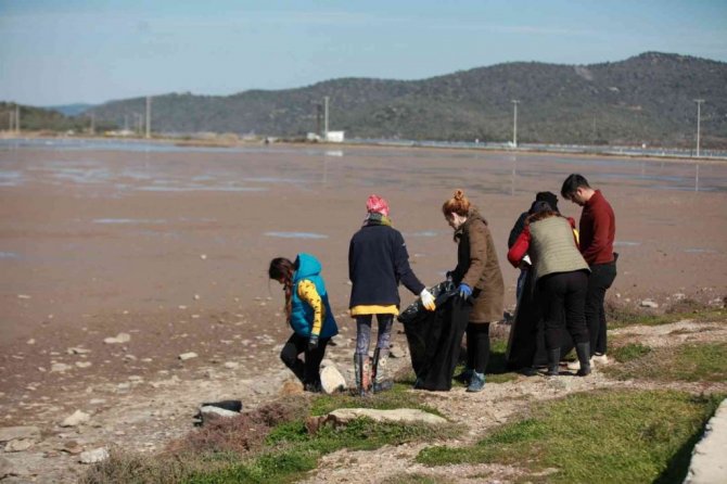 Yüzlerce göçmen kuşuna ev sahipliği yapan Tuzla Sulak Alanı'nı bir grup çevre gönüllüsü alanda çevre temizliği gerçekleştirdi.