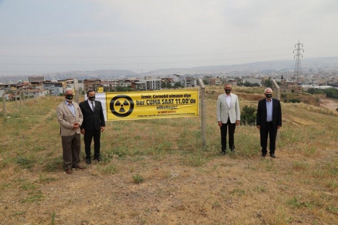 Gaziemir Belediye Başkanı Halil Arda, Emrez Mahallesi'nde eski kurşun fabrikasındaki radyoaktif atıkların alandan kaldırılmasına karşı duran adam eylemini başlatmıştı. Başkan Arda, alınan eylem yasağı kararı nedeniyle bu hafta eylemini yapmazken, Karabağlar Belediye Başkanı Muhittin Selvitopu, Konak Belediye Başkanı Abdül Batur, CHP Karabağlar İlçe Başkanı Mehmet Türkbay ile birlikte alana geldi.
