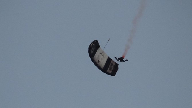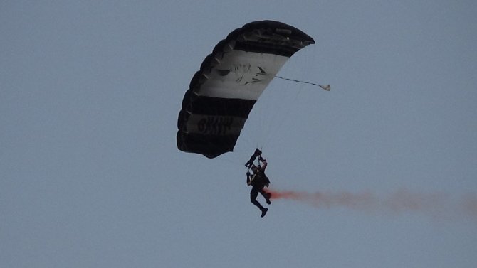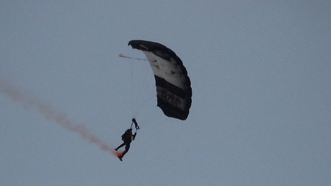 Uçaktan paraşüt ile atlayarak sahneye indi