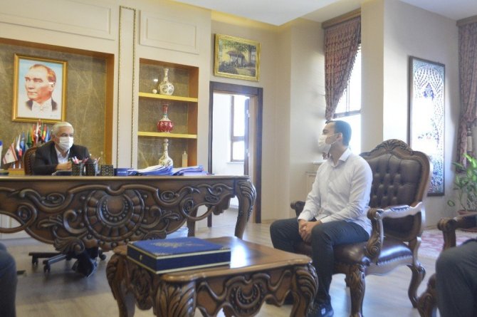 Kütahya’nın Tavşanlı ilçesinden Gaziantep’te düzenlenen Uzay ve Teknoloji Festivali TEKNOFEST 2020 yarışmasına katılan ve ödülle dönen Furkan Karaboğa, Kaymakam Erdoğan Kanyılmaz’a ziyarette bulundu.