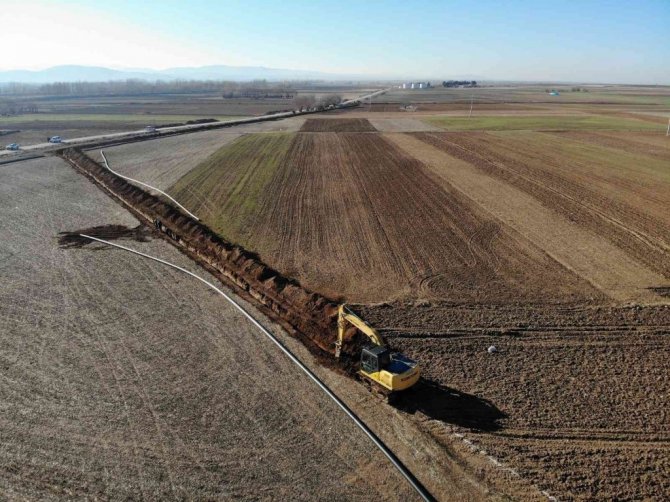 "Altıntaş'ta boru sistemli sulama"