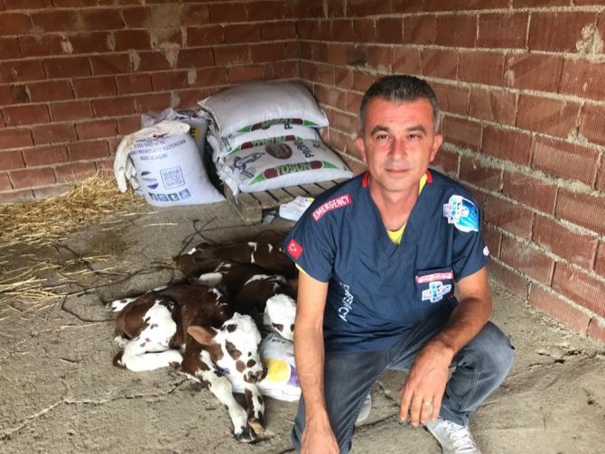 Dokuz ay önce suni tohumlama yaptığı Kezban'ın üçüz doğum yapmasının kendisini şaşırttığını belirten Veteriner Hekimi Özkan Beşenk, "Kezban'a Simental ırkı suni tohumlama yapmıştım. Çok rahat bir gebelik dönemi geçirdi. Kolay bir doğum oldu. Üçüz doğum büyükbaş hayvanlarda ender görülen bir durumdur. Meslek hayatımda ilk defa üçüz doğum yaptırdım. Buzağılar ve annelerinin sağlığı gayet iyi. Bir buzağıya benim ismimin verilmesi de beni çok mutlu etti" ifadelerini kullandı.