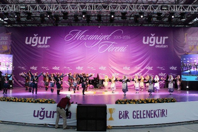 Uğur Okulları’nın İzmir’de faaliyet gösterdiği Bornova, Buca, Çankaya Gaziemir ve Karşıyaka’daki liselerinden mezun olan bin öğrenci için Bornova Rekreasyon Alanı’nda tören düzenlendi. Bornova Belediye Başkanı Olgun Atilla, Bahçeşehir Uğur Eğitim Kurumları Yönetim Kurulu Başkanı Enver Yücel ve Uğur Okulları Genel Müdürü Yücel Yücel’in katıldığı törene aileler de yoğun ilgi gösterdi. Sık sık çocuklarının fotoğraflarını çeken aileler, duygu dolu anlar yaşadı. Gecenin en mutluları ise Uğur Okulları’ndan başarı ile mezun olan öğrenciler oldu. Giydikleri mezuniyet kıyafetleri ile tek tek sahnede yer alan öğrenciler, ellerinde dövizler taşıdı.