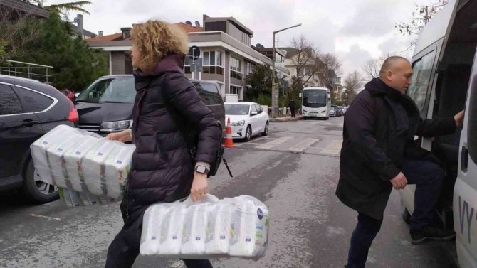 Bakırköy'de bulunan İstanbul Başkonsolosluğuna Ukraynalı ve Türk vatandaşlar tarafından içerisinde çeşitli yardım malzemeleri bulunan koliler getirildi. Getirilen paketlerin içerisinde giysi, ayakkabı, çocuk bezi, mama, ilaç, sargı bezi gibi malzemeler bulunuyor.