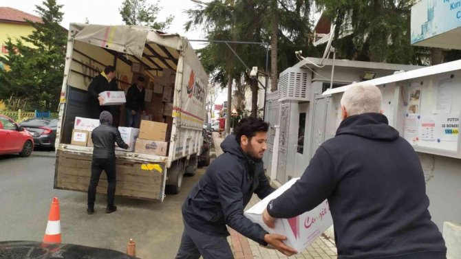Rusya'nın Ukrayna'ya başlattığı saldırılar nedeniyle zor günler geçiren Ukraynalılara destek amaçlı İstanbul Başkonsolosluğu'na yardım malzemeleri...