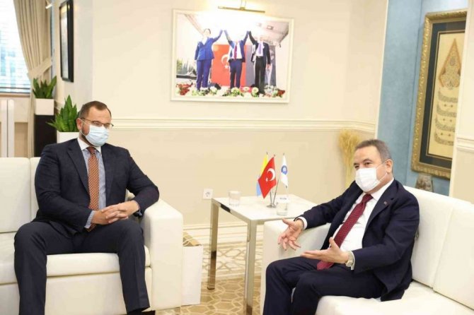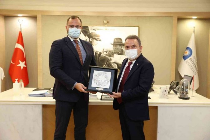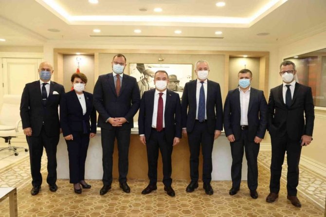 Ukrayna Volin bölgesi Lutsk Belediye Başkanı Ihor Polişuk, Antalya Büyükşehir Belediye Başkanı Muhittin Böcek'e nezaket ziyaretinde bulundu.