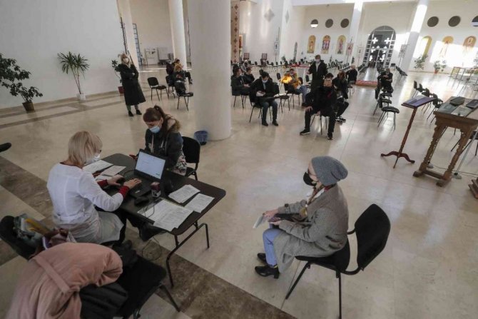 Ukrayna'nın bazı şehirlerindeki kiliselerde korona virüs aşı merkezleri kuruldu.