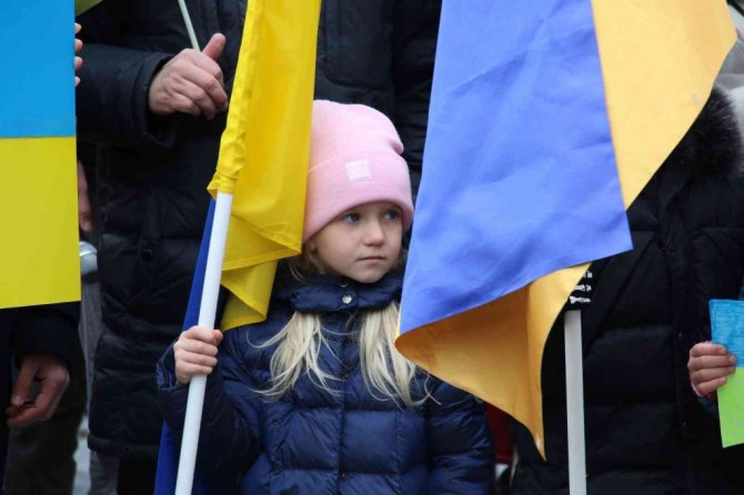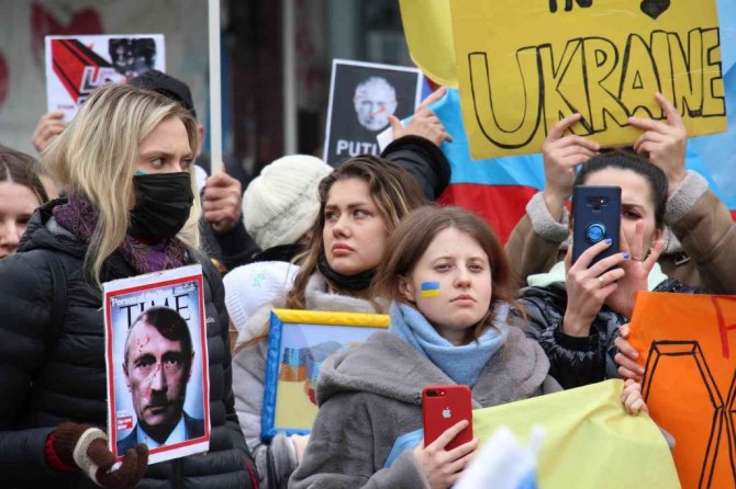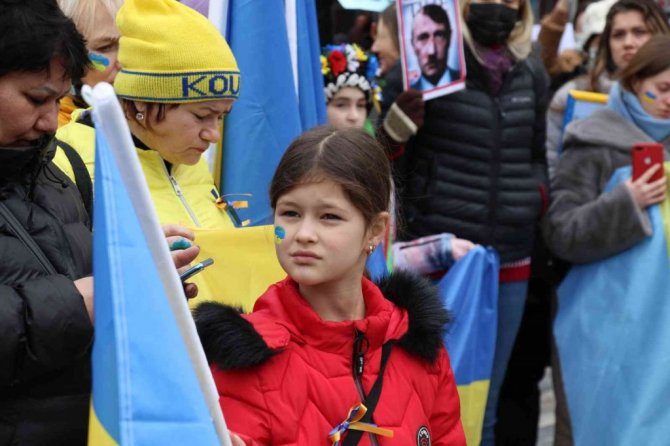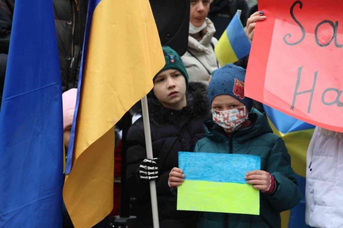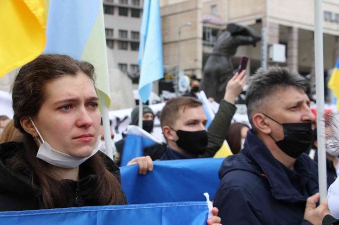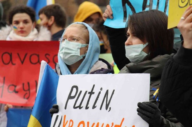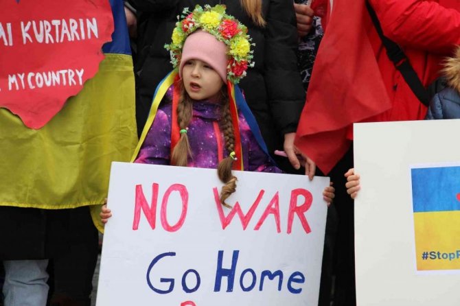 Rusya'nın Ukrayna'ya karşı başlattığı askeri müdahaleyi protesto etmek adına Ankara'da yaşayan Ukraynalılar Ulus Meydanı'nda bir araya geldi. Çeşitli pankartlar açıp sloganlar atan Ukraynalı vatandaşlar, askeri müdahaleyi protesto etti. Ukraynalı küçük kızın İstiklal Marşı'nı okuması ise gururlandırdı.