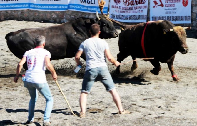 Yaklaşık 10 bin kişinin izlediği boğa güreşlerine Muğla'nın yanı sıra, Aydın'dan da boğalar katıldı. 200'ü aşkın boğanın katıldığı güreşleri izlemek için Muğla ve ilçelerinin yanında Aydın ve Denizli illerinden de izleyiciler takip etti.