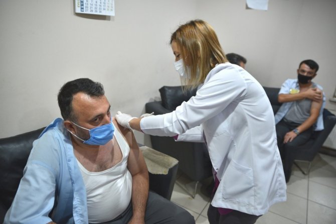 Özellikle SGK'ya kayıtlı çalışanların da aşılama programına alınmasıyla birlikte toplumsal bağışıklık noktasında önemli mesafe alınırken, sağlık ekipleri fabrikalar gibi fazla çalışanın olduğu işyerlerinde mobil aşılama çalışmalarına başladı. Mobil aşı uygulamasından yararlanan Bursa Büyükşehir Belediyesi de Burulaş bünyesinde çalışan şoförlerin aşılarını Kaplıkaya'daki Hareket Merkezi'nde yaptırdı. Yıldırım İlçe Sağlık Müdürlüğü'nden gelen aşılama ve acil müdahale ekibi, sabah saatlerinde aşılama çalışmalarına başladı. Hareket Merkezi binasının girişinde oluşturulan kayıt bölümünde evraklarını imzalayan şoförler, aşılarını yapıldıktan sonra 15-20 dakikada kontrol amaçlı bekletildikten sonra, kaldıkları yerden görevlerine devam etti. Otobüs şoförlerinden 36 yaşındaki Ali Türkmen, bu uygulama sayesinde randevu alma, hastaneye gitme ve sıra bekleme gibi dertleri yaşamadan aşını kolaylıkla olduğunu söyledi.