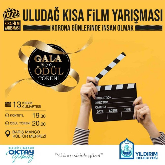 Genç sinemacılara destek vermek ve Türk sinemasına yeni bir soluk getirmek için "1'inci Ulusal Uludağ Kısa Film Yarışması'nı düzenlediklerini aktaran Yıldırım Belediye Başkanı Oktay Yılmaz, "Korona Günlerinde İnsan Olmak temasıyla düzenlediğimiz kısa film yarışmasında dereceye giren eserler belirlendi. Türk sinemasının gelişmesine katkı sağlamak, genç sinemacıları desteklemek maksadıyla bu yıl ilkini düzenlediğimiz Uludağ Kısa Film Yarışması Gala Gecesi ve Ödül Töreni'ne tüm sinemaseverleri bekliyoruz" dedi.