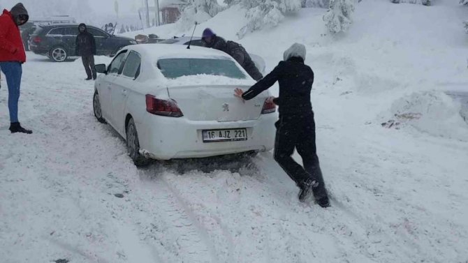 Milli Park gişelerinden iki günde 7 bin 730 araç geçiş yaparken, teleferikle de hafta sonu 5 bine yakın kişi giriş yaptı. Milli Park gişelerinde dün kuyruk yaşanırken, görevliler vatandaşları bekletmemek için çaba sarf etti. Jandarma ekipleri ise kar lastiği ya da zincir olmayan araçların çıkışına izin vermedi.