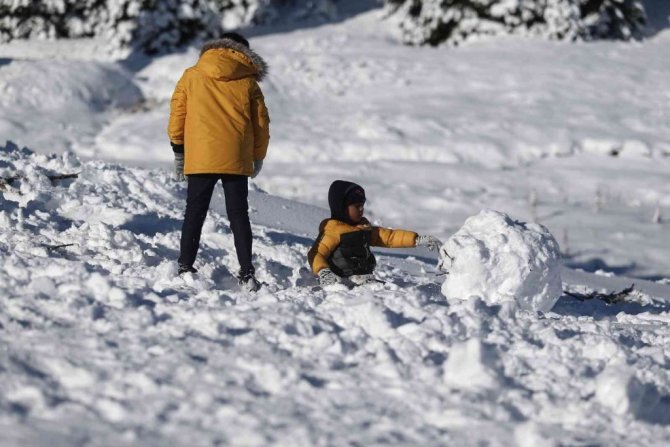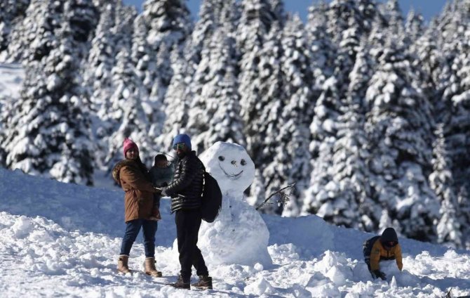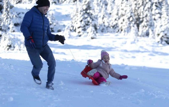 Bol bol fotoğraf çekilen turistler, kızaklarıyla çocuklarını da kaydırarak eğlenmeyi ihmâl etmedi. Hava sıcaklığının eksi dereceleri gördüğü zirvenin kar yağışının artmasıyla birlikte daha da hareketlenmesi bekleniyor.