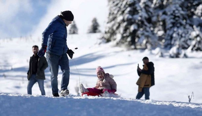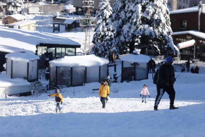 Kış turizminin gözde merkezlerinden Uludağ'a karla birlikte turistler yavaş yavaş gelmeye başladı. Kayak yapmaya müsait olmayan pistler kızaklarıyla kayanlara kaldı.