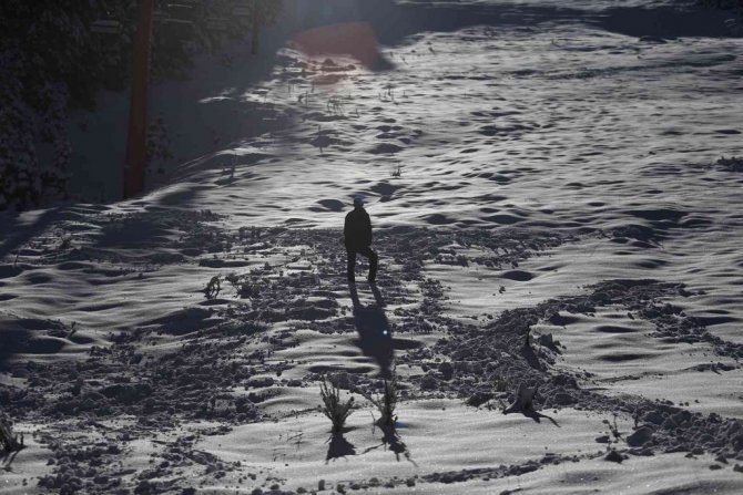 Uludağ’da turistler boş pistlerin tadını çıkardı