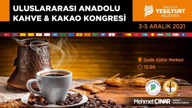 5 Aralık'ta sona erecek kongrenin açılış konuşmasını yapan Yeşilyurt Belediye Başkanı Mehmet Çınar, Anadolu kültüründe özel bir konuma sahip kahvenin geçmişten bugüne kadar uzanan tarihsel sürecinin tüm boyutlarıyla ele alınacağı Uluslararası Anadolu Kahve ve Kakao Kongresine ev sahipliği yapmaktan büyük bir memnuniyet duyduklarını ifade etti.
