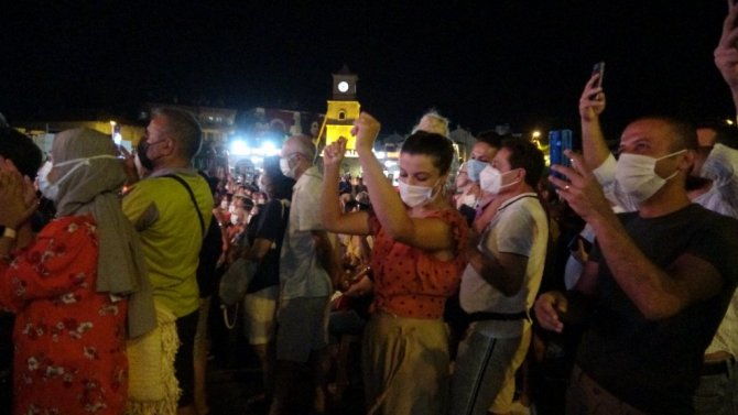 Klarnet sanatçısı Hüsnü Şenlendirici'nin çaldığı müziklere seyirciler oynayarak katılırken, konser alanına HES kodu ve PCR testi sorgulanarak giriş izni verildi.