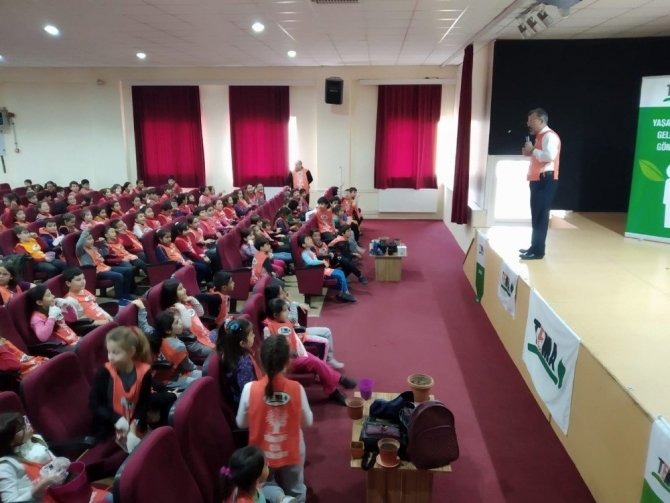 Milli Eğitim Bakanlığı ve TEMA Vakfı İşbirliği protokolüyle hazırlanan doğa eğitim programlarından, Yavru TEMA programı uygulayıcısı, Ticaret Odası ilkokulunda, TEMA Vakfı İzmir İl Temsilcisi Özcan Gö...