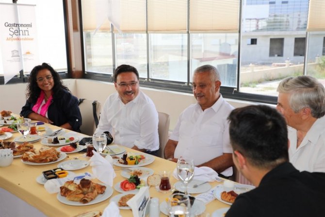 UNESCO Türkiye Milli Komitesi üyelerine Afyonkarahisar'ın tarihi ve kültürel değerleri, mutfak kültürü hakkında bilgiler veren Vali Gökmen Çiçek, "Afyonkarahisar çok sayıda medeniyete ev sahipliği yapmış, uygarlıkların birleştiği bir şehir. Bu açıdan mutfak kültürü de hayli zengin. Eşsiz lezzetleri ile her damağa hitap eden bir mutfak çeşitliliği var. Mutfak sadece mutfak değildir. Tarihtir, kültürdür, teknolojidir. Mutfak her şeydir. Afyonkarahisar'da da mutfak bambaşka. Bugün, Moldova ile Türk yemeklerinin benzerlik gösterdiğini fark ettim. Bunu da ortak tarihimin olmasına bağlıyorum. Sizleri burada ağırlamaktan dolayı çok mutluyuz" dedi.