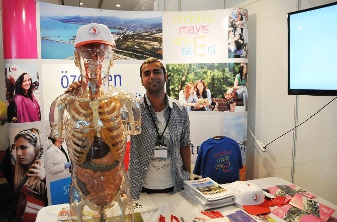 Üniversiteyi tanıtıcı videoların gösterildiği, broşür, dergi, kalem, kupa gibi ürünlerin dağıtıldığı fuarın dikkat çeken tanıtım materyallerinin en başında OMÜ Tıp Fakültesi eğitim araçlarından olan ve insan anatomisini gösteren şeffaf maket oldu. Meraklı ziyaretçiler maketi dikkatlice incelerken özellikle tıp tercihi yapacak adayları da OMÜ standına çekti. Tıp Fakültesi 6. Sınıf öğrencisi Mert Aykut Akbulak ve Ümit Güngör Tıp tercih etmeyi düşünen adaylara OMÜ Tıp Fakültesi’ni “neden tercih etmeleri” gerektiğini anlattı.