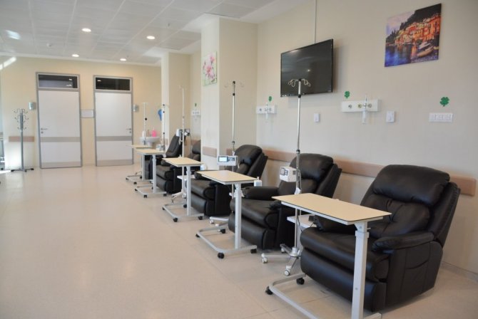 Onkoloji Polikliniğinin kullanımında olan teknik ve fiziki olanaklara da değinen Prof. Dr. Eşbah, "Bölümüzde ayaktan kemoterapi ünitemizde 15 koltuğumuz ve genel durumu iyi olmayan hastalarımız için ünite içinde iki tane yataklı odamız mevcut. Aralık 2018 tarihinden beri yarı otomatik kemoterapi ilaç hazırlama sistemi ile tedavilerimiz hazırlanmaktadır. Daha önce kemoterapi ilaçlarının, onkoloji hemşireleri tarafından manuel (elle) hazırlanırken, şimdi bu sistem sayesinde, insan faktöründen kaynaklanabilecek hatalar ortadan kalkmaktadır. Amacımız ilacı uygun ve doğru dozda hazırlayarak mümkün olan en hızlı şekilde hastalara ulaştırmak. Yarı otomatik sistem ile kemoterapi ilaçları uygun ve doğru dozda (ne eksik ne fazla), daha hassas ve hızlı şekilde, otomatik cihaz ile el değmeden hazırlanmaktadır. Ayrıca bu sistem ile ilaç tasarrufu yapmayı hedeflemekteyiz. Hem hastane bütçesine dolayısı ile de memleket bütçesine katkı sunmak, bizim için önem arz etmektedir" ifadelerini kullandı.