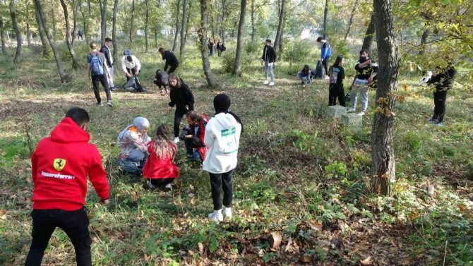 Etkinliğe katılan çok sayıda öğrenci 100'lerce meşe palamudu topladı.