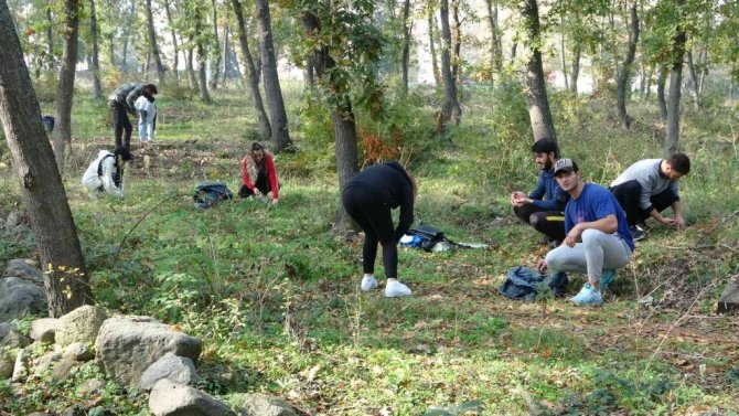 Samsun'da üniversite öğrencileri ormanı büyütmek için meşe palamudu topladı.