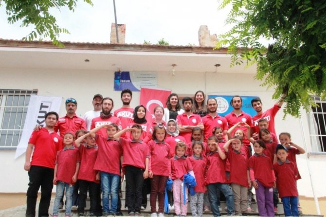 AKUT ekibi daha sonra Güneydamları Depremevleri ilkokulunda da tişört, kalem, silgi ve defter dağıtımı yaptı.