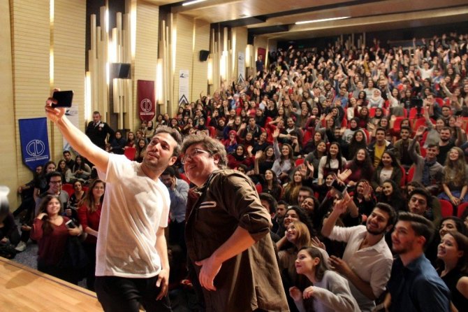 Ayrıca salonun adeta dolup taştığı söyleşide, bazı üniversite öğrencileri Oğuzhan Koç’tan şarkı isteğinde de bulundu. Gençlerin bu isteğini kırmayan sevilen sanatçı Oğuzhan Koç, öğrencilerle beraber birçok şarkı da söyledi. Yaklaşık 2 saat süren söyleşi Oğuzhan Koç ve İbrahim Büyükak’ın öğrencilerle selfie çekmesiyle sona erdi.