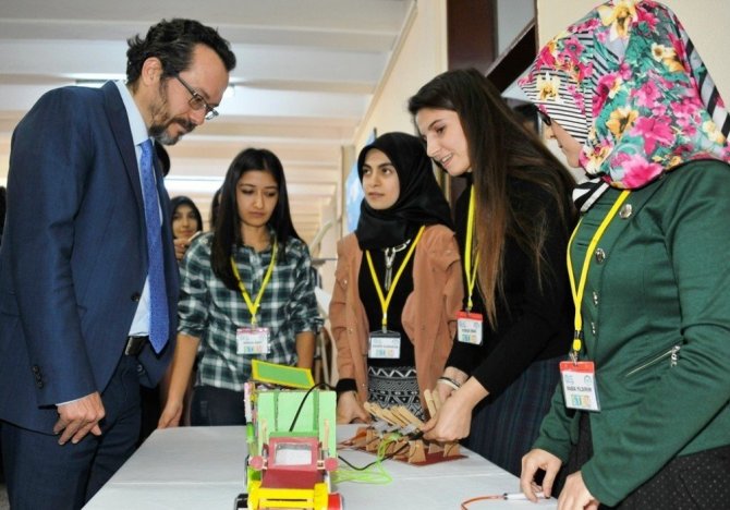 Aydın’da ilk kez bir STEM sergisi düzenlendiğini kaydeden Yrd. Doç. Dr. Karışan; “Etkinliğin amacı fen, teknoloji, mühendislik ve matematiği entegre edip öğrencilere bütünleşik olarak göstermek. Bu projeleri öğrencilerimiz bir dönem boyunca çalışarak tasarladılar. Hayatı kolaylaştırabilecek projelerimiz de var. Çöplerin geri dönüşümüne yardımcı hidrolik sistemle çalışan çöp arabası, fosil yakıt kullanımını azaltacak ve çevreye verdiğimiz zararı en aza indirecek “maglev treni” ve magnetik alan kuvveti ile çalışan tramvay tasarladık. ‘Maglev Treni’ ile fosil yakıt kullanmayarak çevreye faydalı olabilmek amaçlanıyor. Bir başka proje de ‘Otomatik Sulama Sistemi’ tasarımı. Bu sayede toprağın nemini ve mineral miktarı ölçülerek çiçekler otomatik olarak sulanabiliyor” diye konuştu.