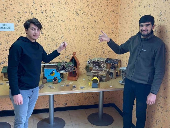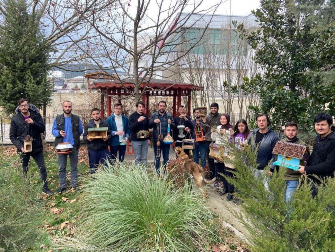 Bursa Uludağ Üniversitesi öğrencileri, kış aylarında kuşların aç kalmaması için yemlik tasarladı.