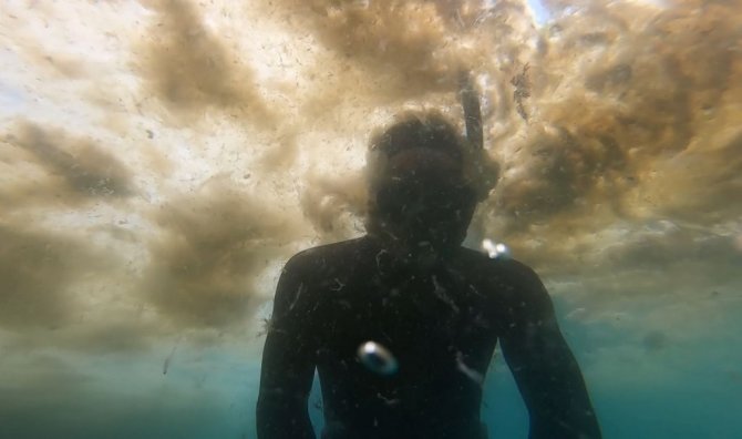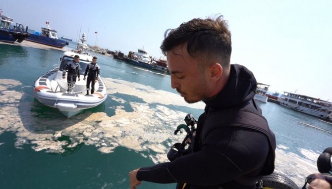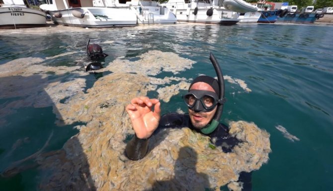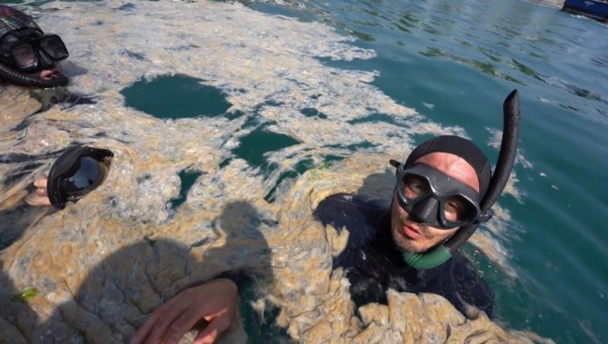 Ünlü fenomen Marmara’da müsilaja daldı, denizin üstü ve altı içleri acıttı