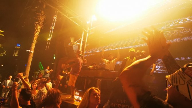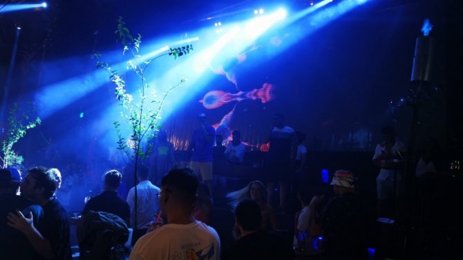 Muğla'nın Marmaris ilçesinde Kovid-19 nedeniyle uzun bir süre kapalı kalan eğlence mekanları, pandemi ve yangınların ardından gece 00.00'a kadar hız kesmeden yerli ve yabancı turistleri eğlendirmeye devam ediyor. Barlar sokağında bulunan Arena kulüpte her gece bir etkinlik düzenlenirken, DJ. Mali'nin sahne ve müzik gösterileri ile gelen misafirler eğlenceye doyuyor. Arena kulüpte bu gece ise "Yine gözümüz yükseklerde" isimli şarkı ile popülerleşen Sakiler grubu sahne alacak. Beş bin kişilik kapasitesini pandemi kuralları sebebi ile 2 bin 500'e düşüren mekanda Marmaris'e tatile gelen ünlü isimlerin de eğlenme fırsatı bulduğu öğrenildi.