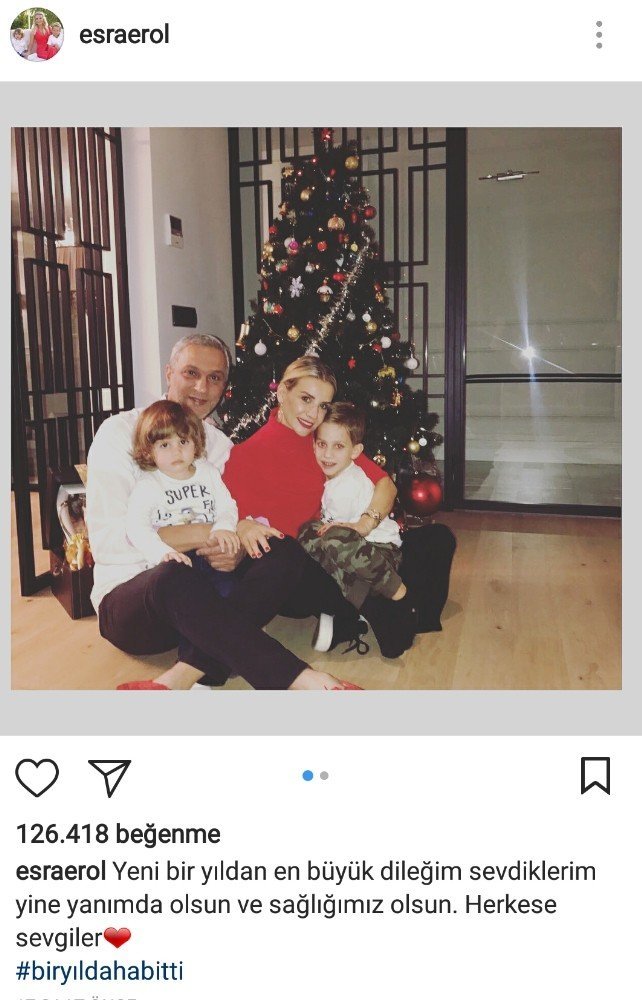 Esra Erol, "Yeni bir yıldan en büyük dileğim sevdiklerim yine yanımda olsun ve sağlığımız olsun. Herkese sevgiler"