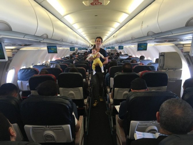 Ünlü sanatçı Kıraç, uçakta yolcuların bebeklerini gezdirdi